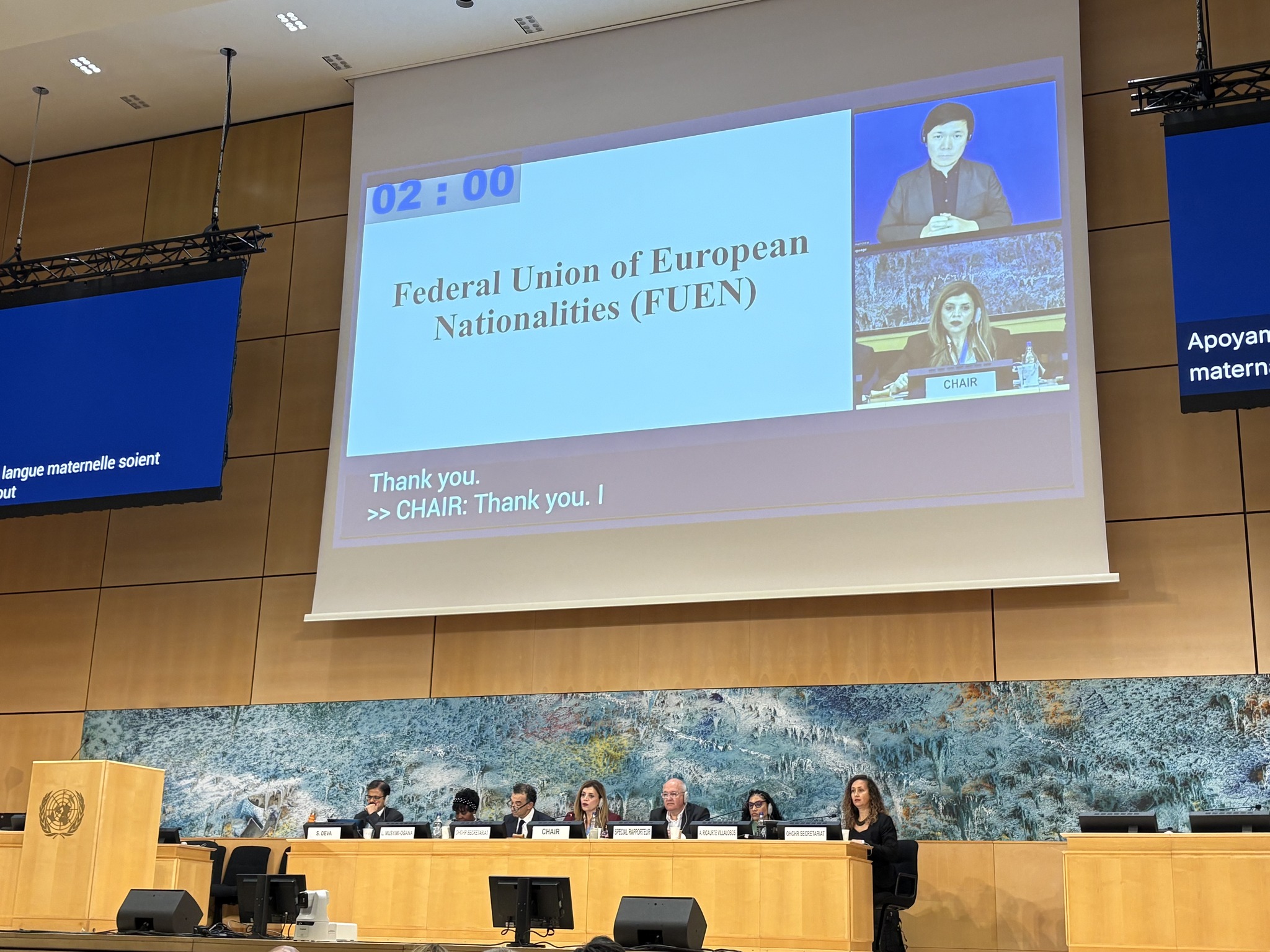 Vom 26. bis 28. November war FUEN-Präsidentin Olivia Schubert in Genf (Schweiz) zur 18. Sitzung des UN-Forums für Minderheitenfragen im Palais des Nations. Das Forum selbst fand am 27. und 28. November zum Thema „The Contribution of Minorities to Diverse, Resilient, and Peaceful Societies“ statt. Am 26. November gingen ihm ein Vorbereitungstreffen sowie ein eigener Dialog der Zivilgesellschaft mit dem UN-Sonderberichterstatter für Minderheitenfragen, Prof. Nicolas Levrat, voraus.