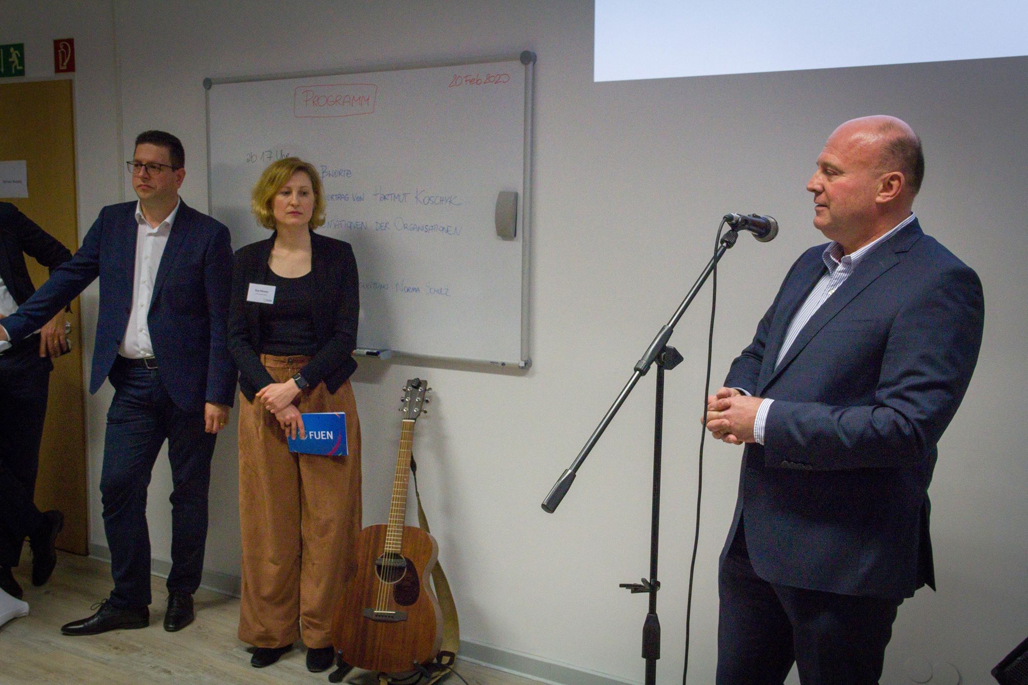 In seiner Rede betonte FUEN Präsident Loránt Vincze, dass Minderheitenrechte ebenso Menschenrechte seien und starke Organisationen für diese eintreten müssen. „Die FUEN hat nicht nur Büros in Flensburg, Berlin und Brüssel, sondern wir sind in jedem Land und jeder Region Europas, wo Minderheiten leben, zuhause.”, sagte er.