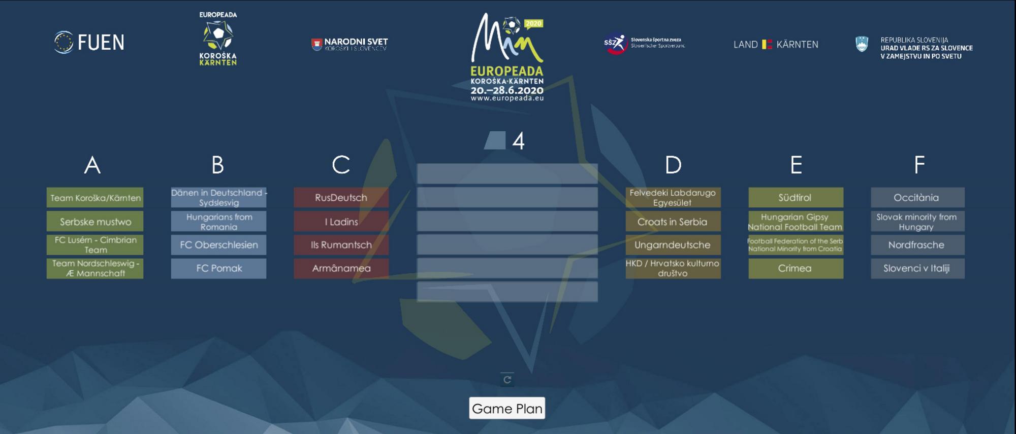 16.11.2019Two minorities celebrating a 100 year jubilee will open next year’s EUROPEADA in Carinthia, Austria: the host Team Koroska (Carinthian Slovenes) will face Team Nordschleswig (Germans from Denmark) on the opening day of the European football championship of national minorities. A record number of teams will compete between 20-28 June 2020. The 24 men’s and 7 women’s teams found out their adversaries in the group stage on Saturday, 16 November 2019 at the official draw held in Sankt Kanzian – Skocjan.