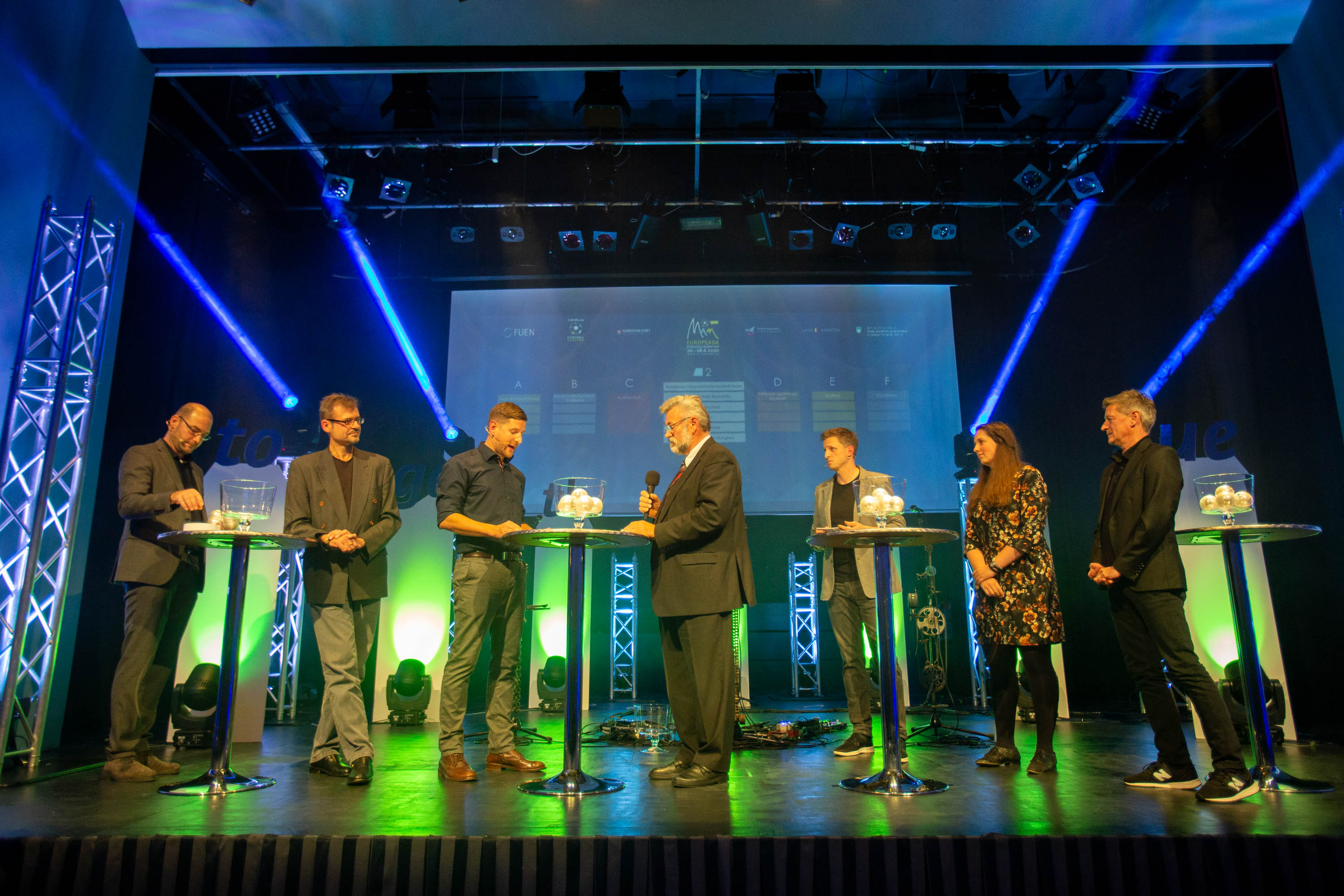 The event, moderated by the Markos three - Marko Loibnegger, Marko Oraže and Marko Haschej was in fact a spectacular show, a good preview of what to expect next year. The competing teams, the FUEN Presidium and staff, local organizers and sponsors were present at the draw, which could be followed live on the FUEN and EUROPEADA 2020 Facebook pages. One of the highlights of the evening was local band Matakustix presenting the official anthem of the EUROPEADA.