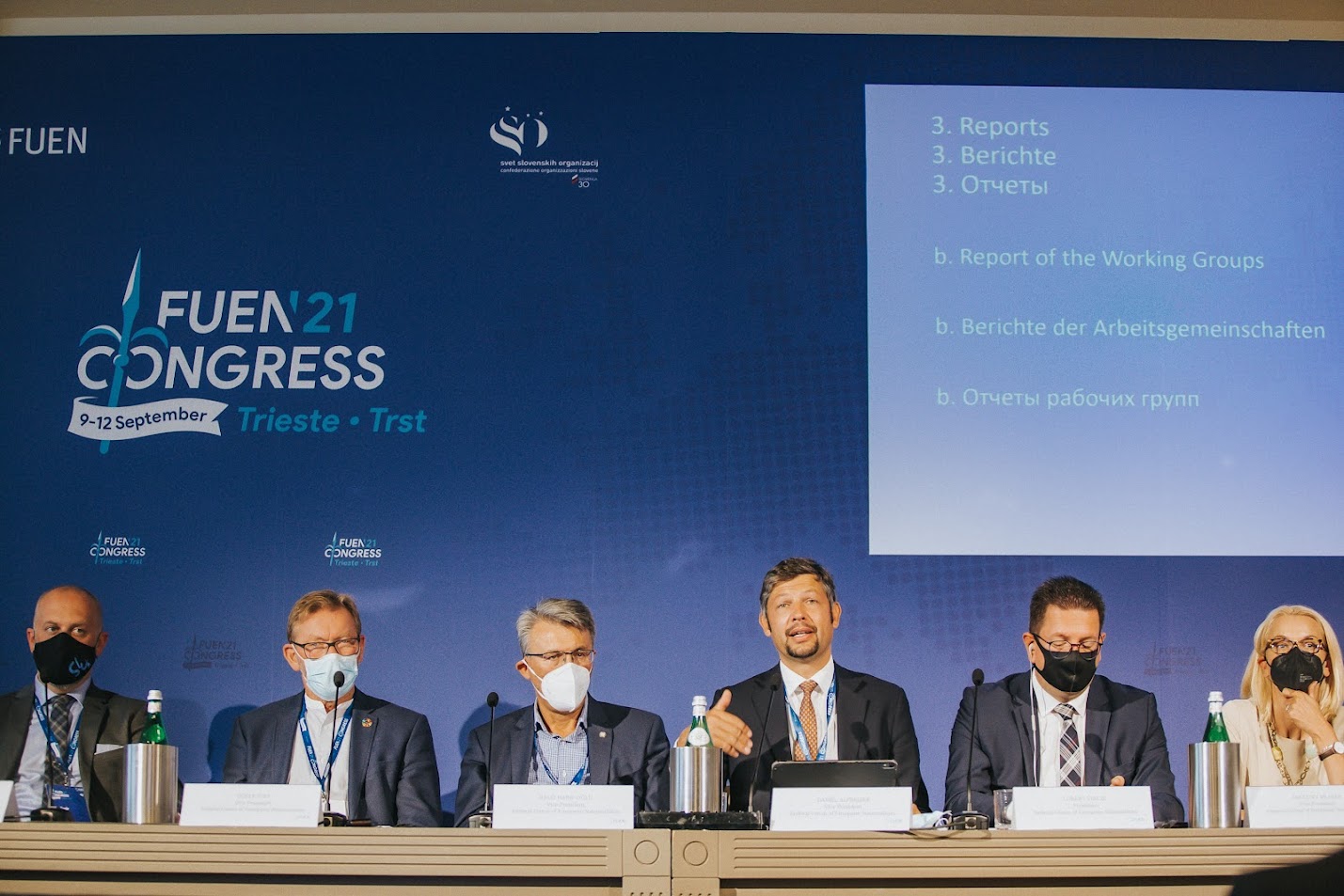 11.09.2021This was an extraordinary period which required extraordinary efforts and flexibility in our organisation – said in his annual report FUEN President Loránt Vincze at the FUEN Assembly of Delegates 2021 on Saturday in Trieste/Trst, Italy. Vice Presidents Gösta Toft, Vladimir Ham, Angelika Mlinar, Halit Habip Oglu, Bahne Bahnsen, Daniel Alfreider and YEN President Andor Barabás presented their activity reports to the Assembly. Secretary General Éva Pénzes praised the FUEN team for their successful efforts in reshaping the organisation’s activities, the Presidium members for the good collaboration and also thanked the member organisations and the organisers of the Congress.